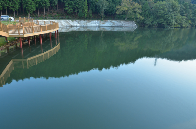 大井池は秋のせいか、風もなく静かなところでした。水鏡がきれいです。