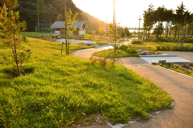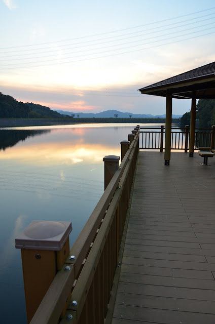 不動ヶ滝を降りていくと、不動ヶ池があります。周囲は公園となっており、家族が散歩していました。とても人の手が行き届いている様子の公園で、さらに夕日がとても綺麗です。