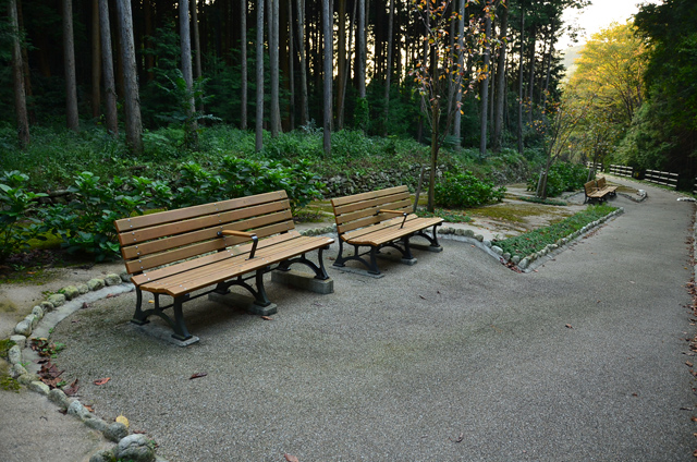 山道の最も高い地点では、意外と眺めがいいです。夜は夜景が綺麗かも知れません。いいところを見つけました。しかし、足元には栗を食べた後があり、もしかしたら熊が出るかもしれないです…。