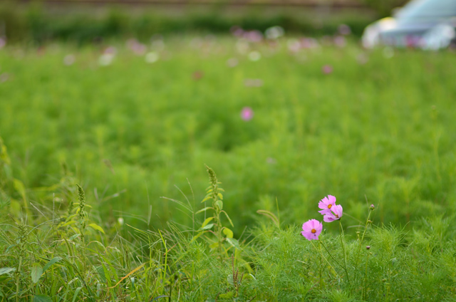 近所の田んぼにコスモスが咲いていました。