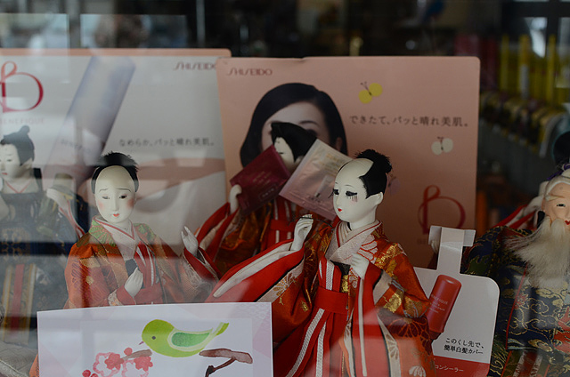 郡上の街には化粧品店や理容院、楽器屋さんもあるんですが、そのお店のひな祭りは、こうなる(笑)
