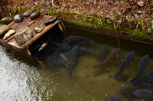 鯉もいい具合にゴリマッチョです(笑)観光客が餌を与えることのできるスポット。冬の時期はお腹を壊すので餌を与えることができません。