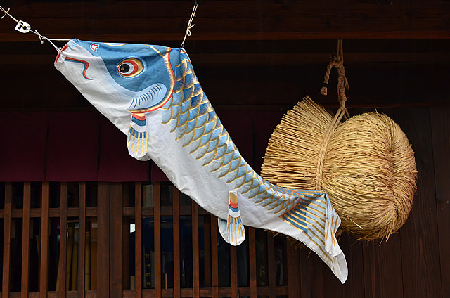 至る所に鯉のぼりが飾ってあるのですが、どれもダイナミックというより、静寂な佇まいに対して、差し色としてマッチしていて良い雰囲気です。