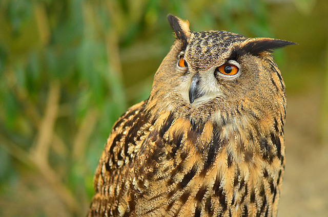 フクロウまで50cm。105mmマイクロでガラス越しに撮ってみました。掛川花鳥園には檻で飼育されているフクロウも含めて、かなりの数が飼育されているようです。