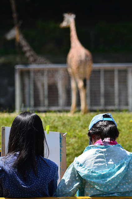子供たちがキリンをスケッチしているの光景に癒されます。