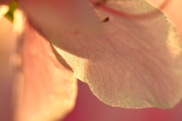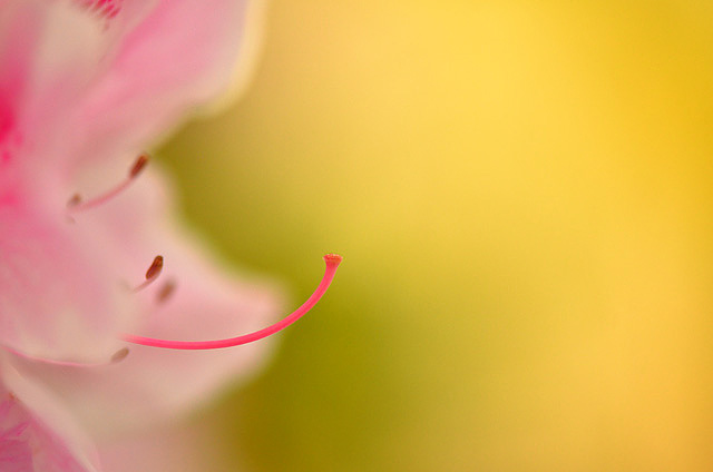 マクロレンズで近所のつつじを撮影してきました。日ごろnikkor 105mm F2.8G micro VRは絞って使うことが多かったので、今回は積極的に開放を使ってみたいと思いました。しかし、開放F2.8による接写は極薄ピンの世界。頭を1mm動かすだけで、被写体が完全にボケてしまうのです。なんと恐ろしい…。
