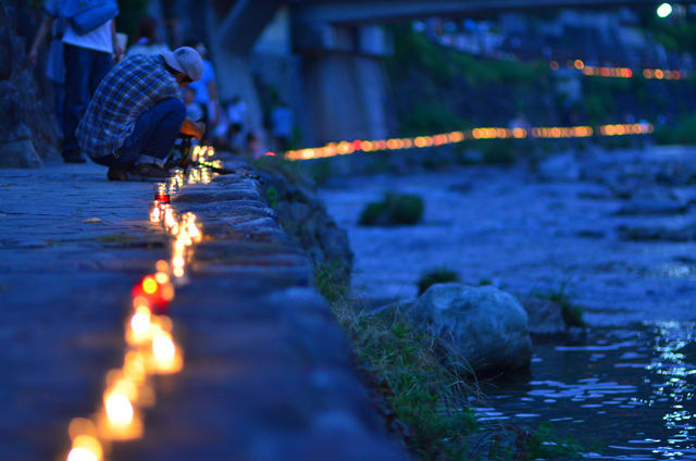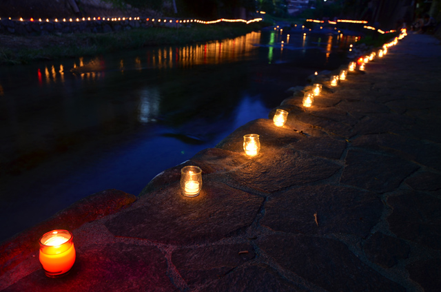 豊田市足助町の「たんころりん」に行ってきました。香嵐渓に沿った古い街並に、提灯やキャンドルが置かれています。(キャンドルは「万灯まつり」と呼ばれるそうです)