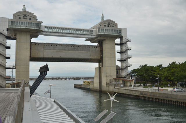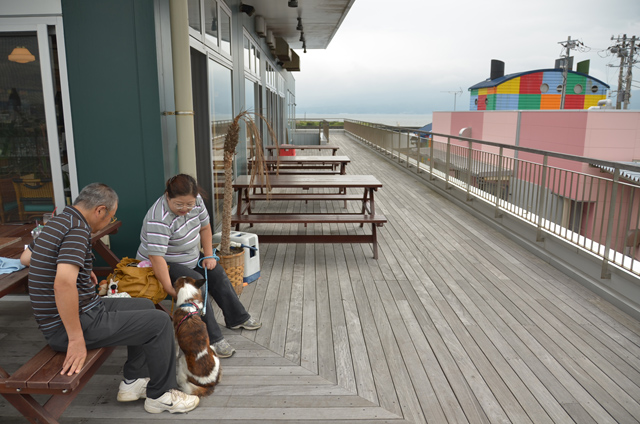 おいしい料理を食べた後は周辺観光。すぐ近くの防潮堤「びゅうお」に寄ってきました。地震6以上の津波に対応できる防潮堤だそうです。上部は展望台となっています。この日は曇りでしたが、晴れていれば富士山もよく見えるようです。夜はイルミネーションで照らされるんだとか…。