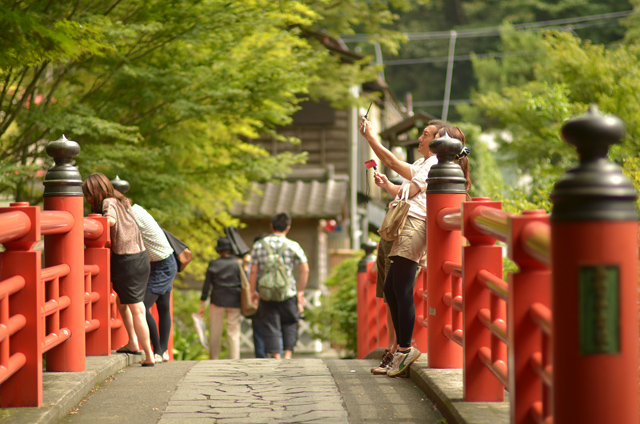 赤い橋はこんな感じで観光客が賑わいを見せています。前フリして申し訳ありませんが、前述した浴衣+赤い橋の組み合わせは残念ながら一枚も撮ってませんでした。(そこを撮影するには、かなりの勇気がいります。汗)